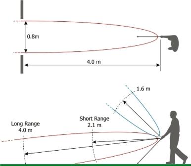 Το Ultracane έχει δύο στάσεις για να διαλέξετε: η πρώτη στάση η οποία εντοπίζει τα εμπόδια μέχρι 2 μέτρα από τη λαβή, και η δεύτερη στάση η οποία εντοπίζει τα εμπόδια μέχρι 4 μέτρα από τη λαβή. Το επάνω αισθητήριο μπορεί να εντοπίσει αντικείμενα περίπου 1,6 μέτρα από τη λαβή.