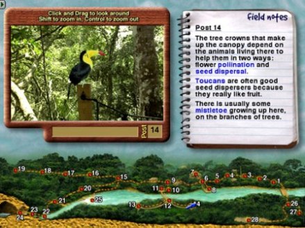 Explore 360-degree panoramas using QuickTime Virtual Reality. Climb into the tropical rainforest canopy without leaving the ground or come face-to-face with a jaguar or a three-toed sloth.