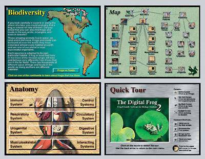 The latest version of our award-winning virtual frog dissection, anatomy and ecology program. Like all Digital Frog International CD-ROMs, it uses the full spectrum of multimedia technologies—full-screen video, animation, sounds, narration, in-depth text and still images—to bring teaching dissection and anatomy to life.