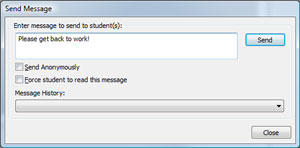 Send message is the quickest way to keep a student on task. Once a student knows that the teacher is watching, that is usually enough to keep them focused. Messages can be typed in or selected from the last 10 messages sent. They can be sent to one, selected or all students in the class.