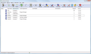 The details view shows columns of information about students. By sorting on the column teachers can quickly see the computer, who's logged in, their current application, last visited websited, last question, channel number and version of the software.