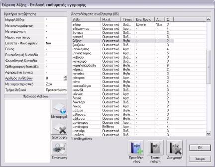 σε -ος, όπως τερματισμός κ.α. Επιπλέον, παρέχει τη δυνατότητα αναζήτησης