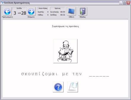 Γραφή / συμπλήρωση γραμμάτων, λέξεων και προτάσεων
