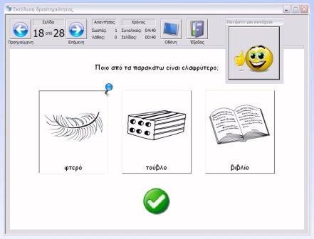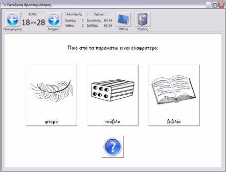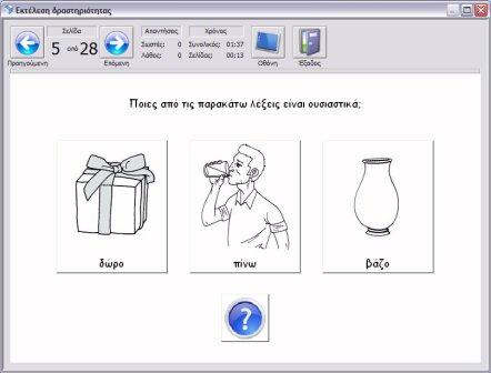 Επιλογή εικόνων - εκφωνήσεων - γραπτών λέξεων με σημασιολογικά, φωνολογικά,