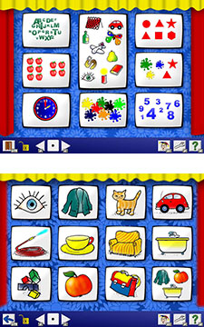 offers material for the subjects Colors, Shapes, Size, Letters, Numbers, Sets and the clock.