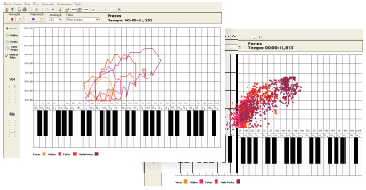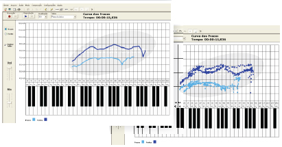 The program also allows to register note by note (Voice Range Profile), when necessary. The soft curve appears in the light blue and the loud in dark blue.