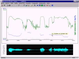 The comparison screen allows the analysis of concomitant data from two files applying the functions of the voice analysis and vocal quality, enabling clinician and client to see, listen and discuss the differences between the two voice outputs and also to follow the treatment process.